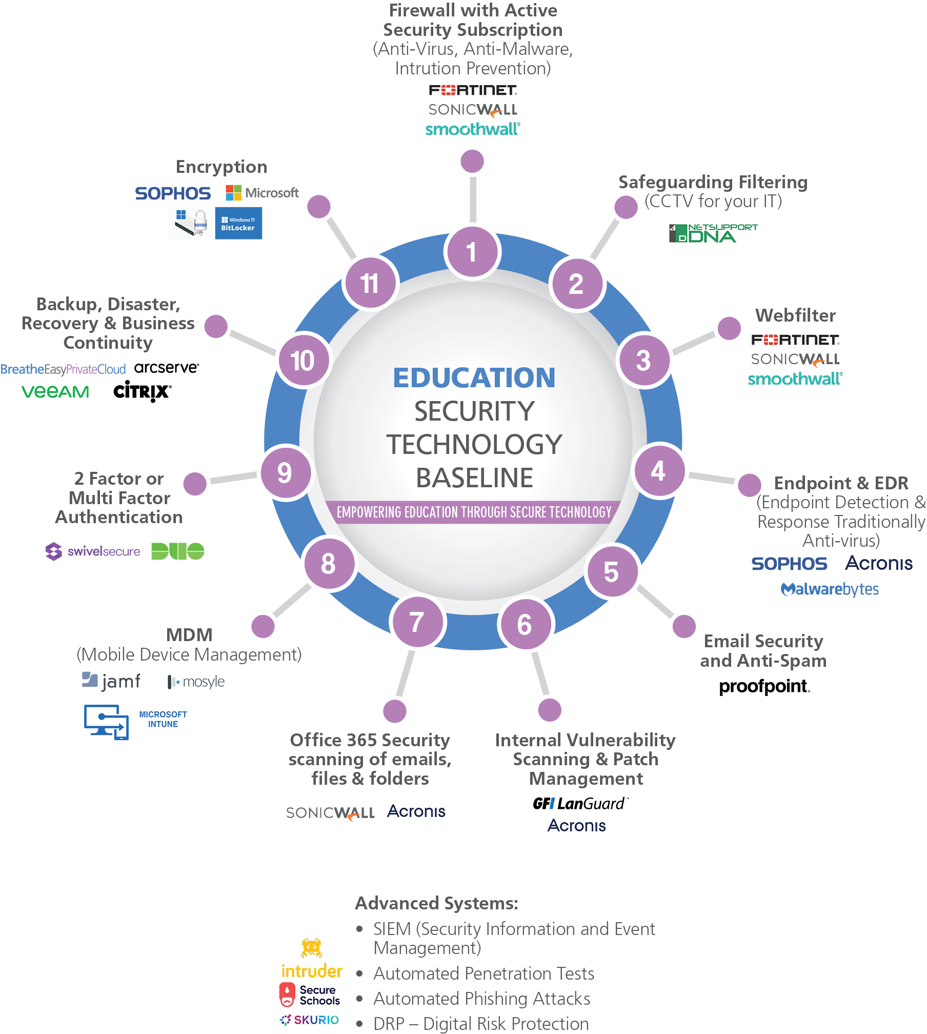 Cyber Security solutions and services are provided to schools that work with us through IT Managed